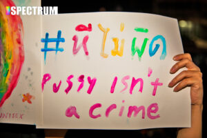 สุดท้ายเห็นที่รูปยังเขียนด้วยว่า “Pussy is Unisex” ด้วย อยากจะสื่ออะไร? – “Pussy is Unisex ก็คือตรงตามตัวเลยค่ะ เหมือนหลายๆ คนมองว่า pussy เป็นสัญลักษณ์ของเพศหญิง ซึ่งจริงๆ แล้วมันไม่จำเป็นเสมอไป อย่าง transmen ซึ่งเป็นผู้ชายก็อาจจะมีได้ หรือคนอื่นๆ ที่ไม่ได้นิยามตัวเองว่าเป็นผู้หญิงก็มีได้เหมือนกัน ไม่อยากให้ผูกติดกับความเป็นผู้หญิงอย่างเดียว เพราะฉะนั้นเราอยากให้คนโอบรับและทำความเข้าใจกับตรงนี้ด้วย”