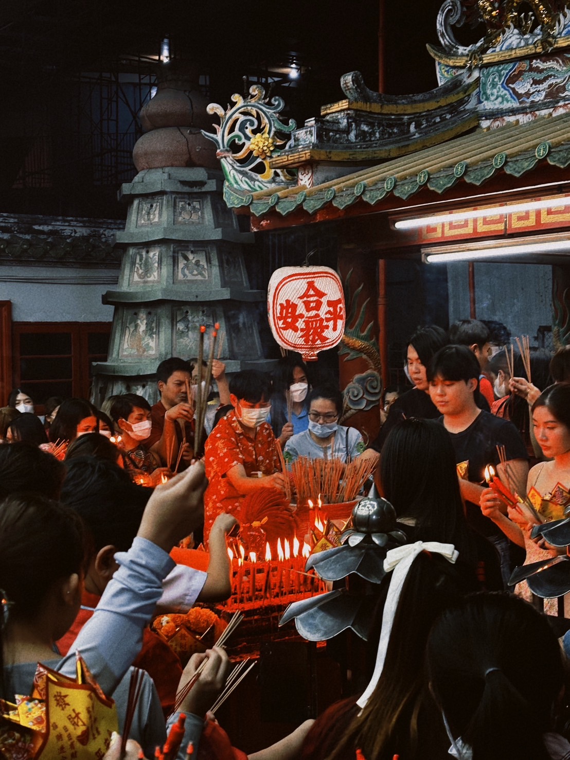 หางแถวที่รอไหว้ศาลเจ้าแม่ทับทิมในวันที่ 28 มกราคมยาวประมาณ 300 เมตร การต่อแถวในช่วงเวลาประมาณ 1 ทุ่มกินเวลาราว 30 นาที ทั้ง ๆ ที่ปากทางเข้าศาลเจ้าแม่ทับทิมที่ล้อมไปด้วยรั้วสังกะสีของโครงการคอนโดจะมีลูก ๆ คอยบอกว่าศาลเจ้าแม่ทับทิมเปิดให้บริการตลอดคืน ถ้ามีธุระก็ค่อยแวะกลับมาก็ได้ แต่ไม่อาจหยุดความศรัทธาตั้งมั่นของผู้คนที่หลั่งไหลทั้งจากเลิกงาน เลิกเรียน เพื่อมาสักการะบูชาเจ้าแม่ทับทิมที่แมสใน TikTok และสำคัญต่อจิตใจของคนในพื้นที่ ในฐานะ ‘ลมหายใจสุดท้ายของสามย่าน’